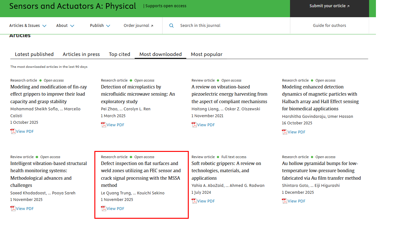 ・[OPEN ACCESS] Defect Inspection on Flat Surfaces and Weld Zones Utilizing an FEC Sensor and Crack Signal Processing with the MSSA Method , Sensors and Actuators A: Physical